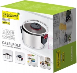 Predstavljamo vam nerjavno jeklen lonec Maestro, ki je izdelan iz visoko kakovostnega nerjavnega jekla, ki zagotavlja trpežnost in dolgo življenjsko dobo. Njegovo večplastno dno s akumulacijo toplote skrbi za enakomerno segrevanje in vzdrževanje temperature, kar prispeva k učinkovitemu kuhanju.