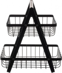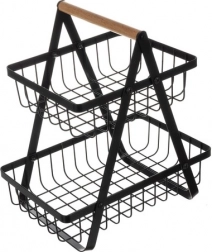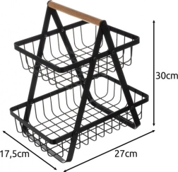 Praktično dvonivojsko stojalo iz trpežnega jekla z udobnim lesenim ročajem vam pomaga pregledno organizirati sadje, zelenjavo in prigrizke. Zahvaljujoč visokim robovom živila ostanejo varno na mestu, široka osnova pa zagotavlja stabilnost tudi pri polni obremenitvi.