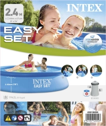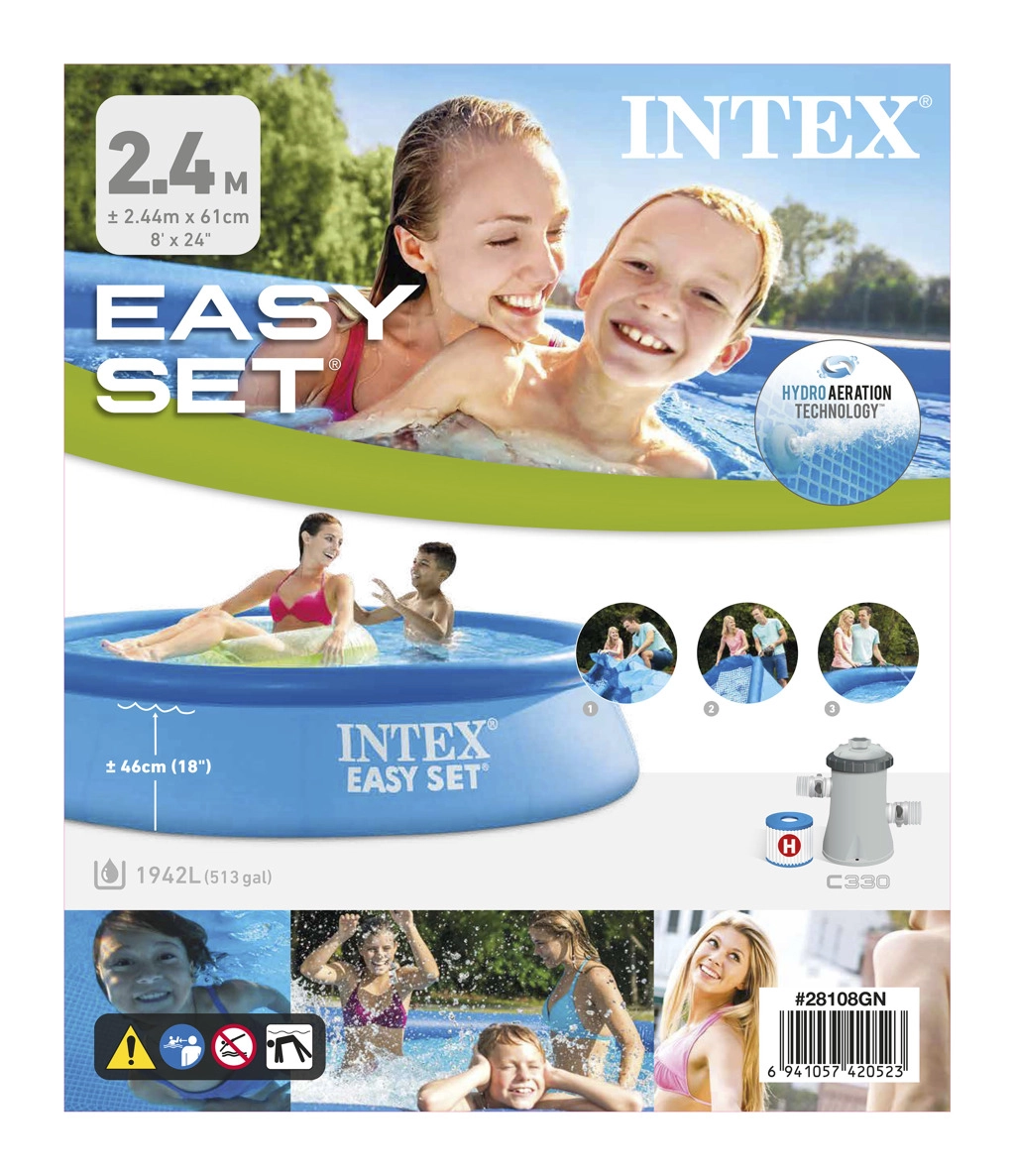 Uživajte v poletju z družinskim bazenom Intex Easy Set 244 × 61 cm, ki se ponaša z hitro montažo v 10 minutah, odpornim 3-slojnim PVC in priloženo filtrirno črpalko. Odlična izbira za vrt, kjer boste cenili preprosto vzdrževanje in stabilno konstrukcijo z volumnom vode do 1.942 l.