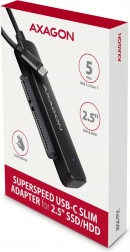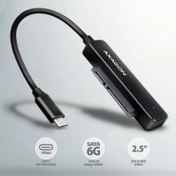 Adapter AXAGON FASTPort2 omogoča enostavno povezavo in hitro zamenjavo SATA 2.5" HDD ali SSD preko povezave USB-C kabla dolžine 20 cm. S podporo USB 3.2 Gen 1 nudi hitrost prenosa do 5 Gbps, funkcija Plug & Play pa samodejno prepozna naprave.