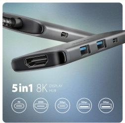 Hub je izdelan iz trpežnega aluminijastega ohišja za boljše hlajenje. Funkciji Plug And Play in Hot Plug omogočata enostavno priklapljanje in odklapljanje naprav brez zapletene namestitve. Možna je tudi povezava s telefonom prek USB-C, kar omogoča priklop tipkovnice, miške ali monitorja.