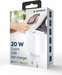 Odkrijte moč hitrega polnjenja z našim belim USB polnilnikom, ki ponuja 20 W moči za vaše pametne telefone in naprave. Dva priključka – USB‑A in USB‑C – omogočata prilagodljivo povezovanje in hitro polnjenje večine sodobnih naprav.