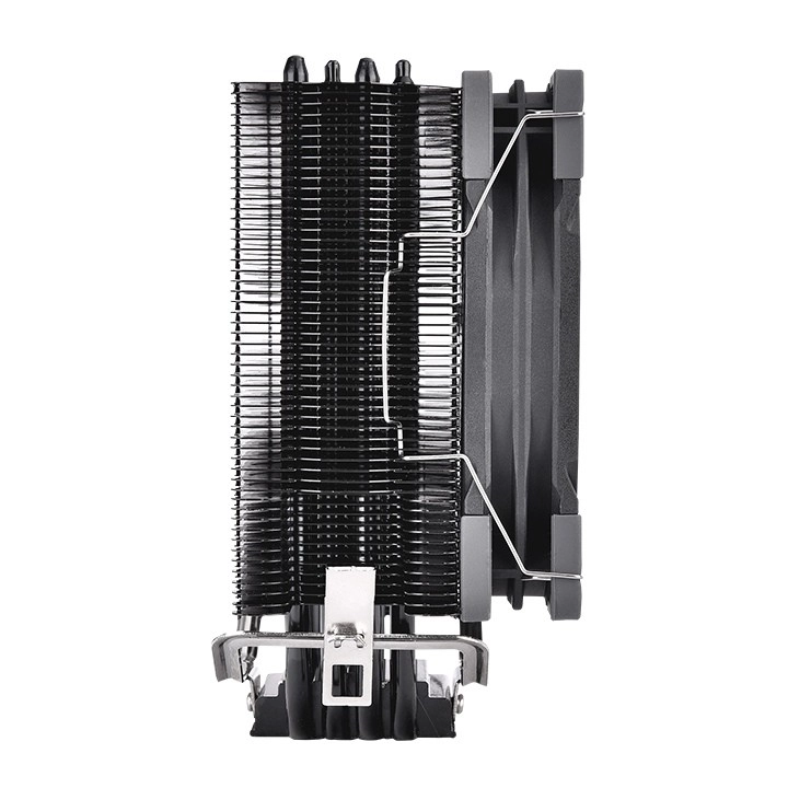 Bakrena osnova in goste aluminijaste rebra zagotavljajo zanesljivo odvajanje toplote tudi pri večji obremenitvi, da procesor deluje stabilno in brez throttlinga.