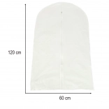 Zanesljiv ovitek dolžine 120 cm je popoln za obleke, krila, srajce in plašče. Prozorna izvedba olajša izbiro oblačila brez odpiranja, zgornja odprtina pa omogoča udobno obešanje na obešalnik. Odlična izbira za domačo uporabo in potovanja.
