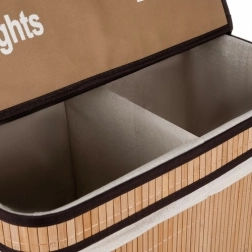 Ta dvokomorni koš za perilo je izdelan iz trpežnega bambusovega materiala, ki ni le vzdržljiv, ampak tudi ekološki. Edinstvena konstrukcija zagotavlja stabilnost koša tudi pri polni kapaciteti. S kapaciteto do 100 litrov je idealen za večjo količino perila. Eleganten in stilski dizajn se z lahkoto poda v vsak interier.