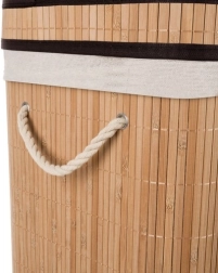 Vertikalni bambusovi trakovi v kombinaciji s tekstilno oblogo in pokrovom ne le estetsko ustrezajo, temveč zagotavljajo tudi moč in vzdržljivost. Praktični nosilni ročaji olajšajo prenašanje koša tudi v polnem stanju.