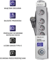 Ta prenapetostni podaljšek je zanesljiva rešitev za dom in pisarno. Omogoča varno priključitev več naprav z enega mesta, ohranjanje reda v kablih ter popoln nadzor nad napajanjem zahvaljujoč osvetljenemu nožnemu stikalu Quick Switch.