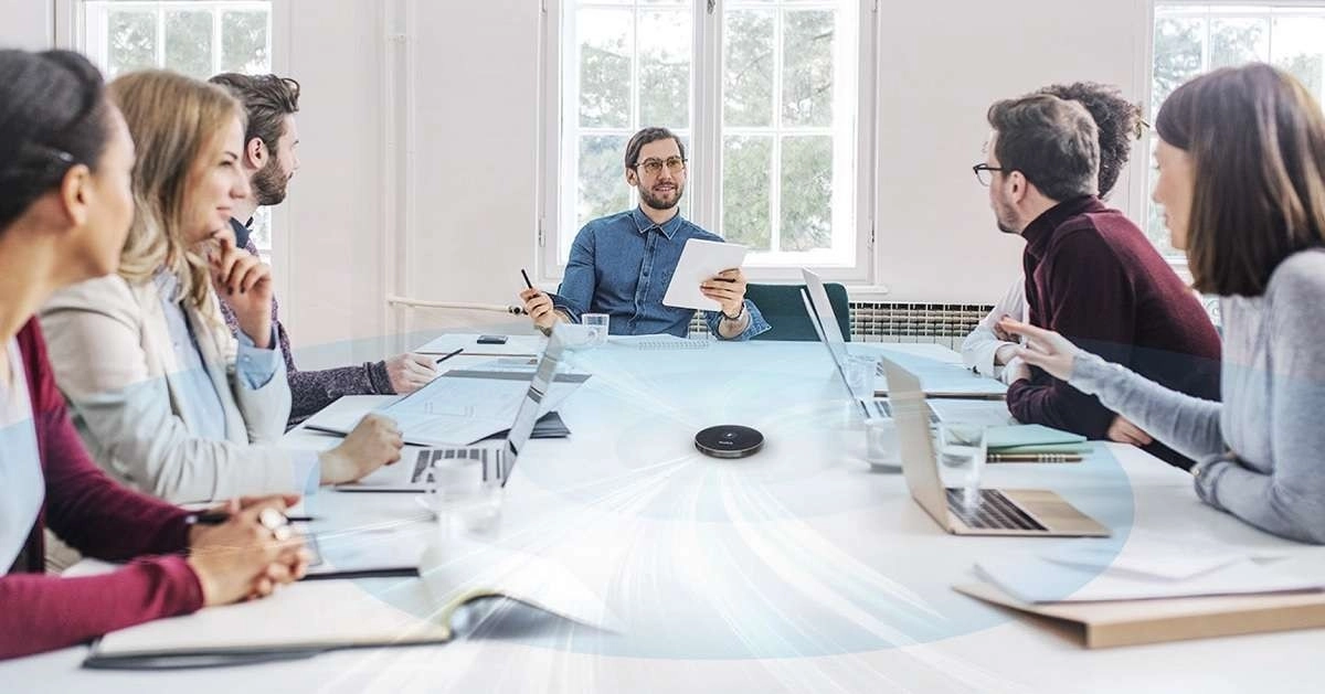 Mikrofon zajame vsak zvok v krogu 6 metrov, idealno za srednje velike in večje konferenčne sobe.