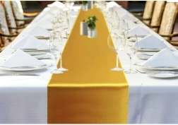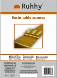 Tekač za mizo Ruhhy zlate barve je odlična izbira za dekoracijo mize ob kateri koli slavnostni priložnosti. Izdelan je iz goste satenaste tkanine, ki je odporna proti poškodbam in zagotavlja večsezonsko uporabnost.