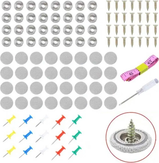 Komplet za popravilo stropne obloge avtomobila. Omogoča vam, da v trenutku popravite povešeno stropno oblogo s pomočjo posebnih popravnih zakovic in zatičev. V kompletu sta tudi izvijač in merilni trak v centimetrih, kar delo še dodatno olajša.