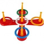 Ta igra metanja Križ s krogi je popolna kombinacija zabave in učenja. Odličen način za treniranje koordinacije rok in oči otrok med igro. Igra vključuje križno osnovo s petimi stojali in pisane kroge, ki jih je treba metati na stojala za pridobivanje točk.