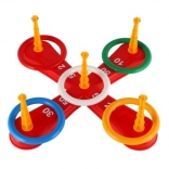Igra vsebuje križno osnovo in pisane kroge za zabavno metanje.