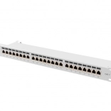 Patch panel s 24 vrati RJ-45 kategorije 7, idealen za organizacijo in zaključevanje kablov v rack omarah. Hitra in enostavna namestitev zahvaljujoč IDC/LSA konektorjem.
