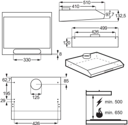 - Zmogljiv motor zagotavlja učinkovito odsesavanje kuhinjskih hlapov in odstranjevanje neprijetnih vonjav.