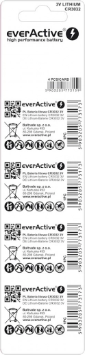 Zaradi kakovostne izdelave in zanesljivosti so baterije everActive CR3032 izbira, ki vas ne bo razočarala.