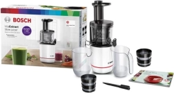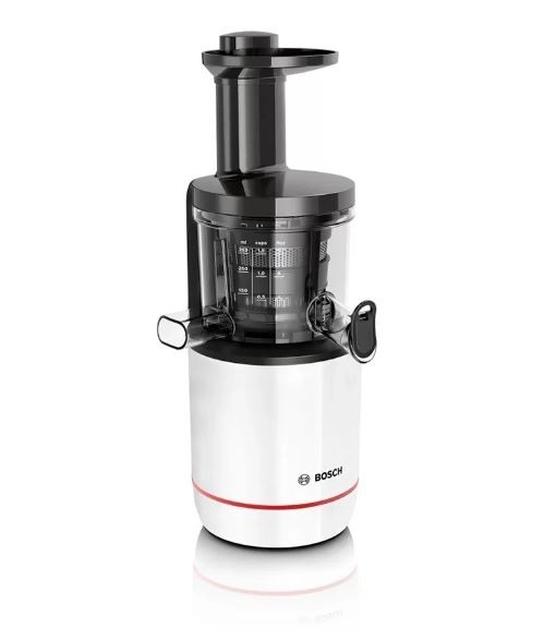 BOSCH MESM500W je zanesljiv počasni sokovnik, zasnovan za zdrave in okusne sokove vsak dan. Nežno stiskanje pri nizki hitrosti ohranja vitamine, minerale in naravno barvo sadja in zelenjave. Zahvaljujoč zapiralnemu izlivu DripStop bo delovna površina ostala čista brez kapljic.
