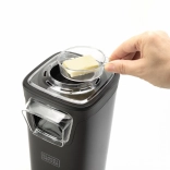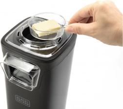 Priložen je multifunkcijski merilni lonček, s katerim preprosto odmerite idealno porcijo in ga hkrati uporabite za topljenje masla ali pripravo prelivov, medtem ko naprava deluje. Zaradi kompaktne in enostavno čistljive zasnove se pripravljalnik odlično poda v vsako kuhinjo.