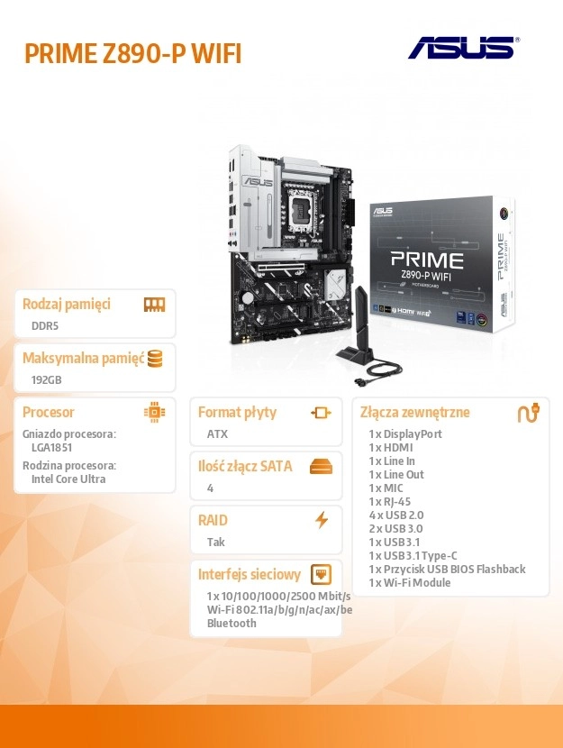 Asus Prime Z890-P WiFi je zanesljiva osnova za moderne sestave z osredotočenostjo na dolgoročno zmogljivost in učinkovitost. Robusten napajalni sklop, premišljeni hladilniki in inteligentno nastavljanje v UEFI zagotavljajo stabilnost tudi pri visoki obremenitvi – bodisi pri igranju, delu z multimedijo ali izračunih s podporo AI. Podpora pomnilniku DDR5 povečuje prepustnost in odzivnost celotne platforme.