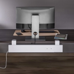 Premišljene prezračevalne odprtine zagotavljajo kroženje zraka in zmanjšujejo tveganje pregrevanja napajalnih elementov. Minimalistična izvedba iz kakovostnih materialov se zlije z vsakim interierjem ter pomaga ohranjati delovno površino pregledno in varno.