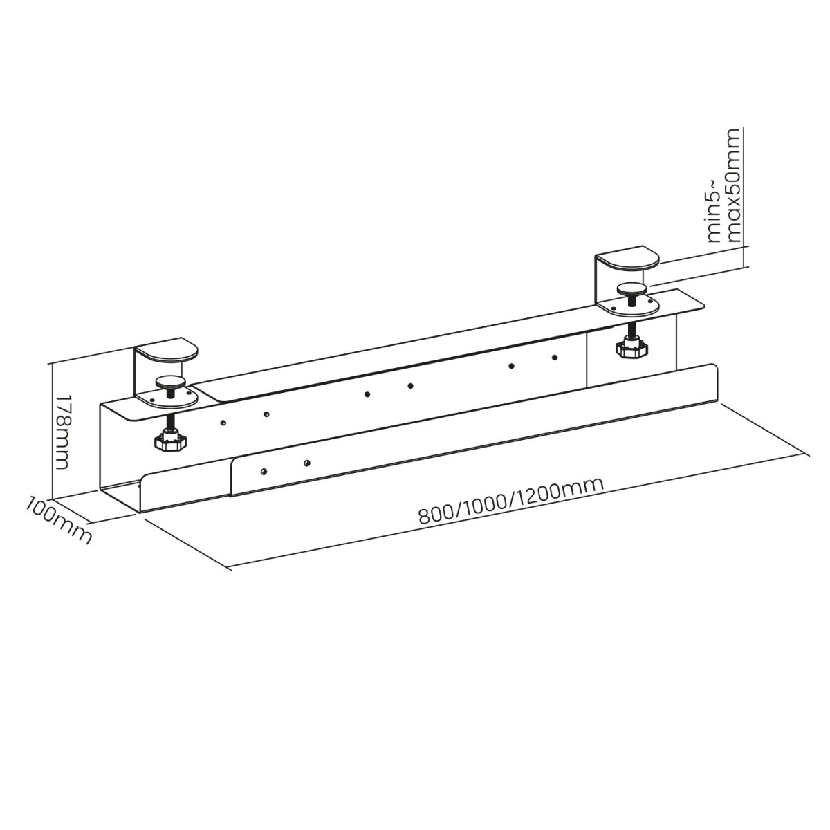 Podmizni organizator kablov MACLEAN MC-333 je pametna rešitev za čist in ergonomičen delovni prostor. Zahvaljujoč trdni konstrukciji in nosilnosti do 5 kg varno sprejme razdelilnik, adapterje in odvečno ožičenje. Nastavljiva dolžina v treh korakih (800/1000/1200 mm) omogoča prilagoditev različnim mizam in potrebam.