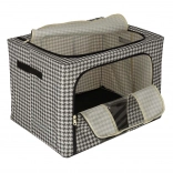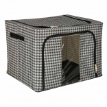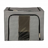 Praktične zadrge in dve dostopni mesti olajšata vstavljanje in jemanje stvari brez nereda. Trpežen tekstilni poliester je enostaven za vzdrževanje, eleganten črno-beli pepito vzorec pa se poda v vsak interier.