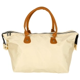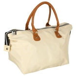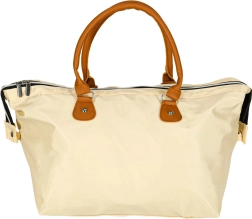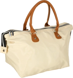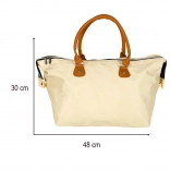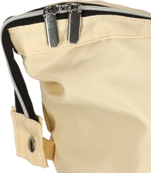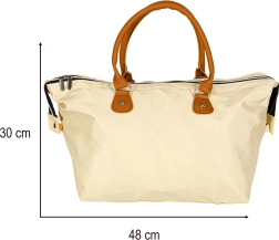 Velik glavni predal z zadrgo in brezčasna bež barva za vsestransko uporabo na vozičku ali kot potovalna torba.