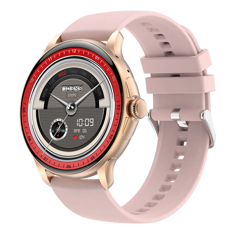 Ura COLMI V72 združuje sodoben dizajn z napredno opremo za aktiven življenjski slog. Svetel AMOLED 1,43" zaslon z visoko ločljivostjo 466 × 466 px je odlično berljiv tudi na soncu, podpora Always On Display pa ves čas prikazuje uro in ključne informacije. Zlato ohišje in rožnat silikonski pašček dodata vašemu slogu pridih elegance.