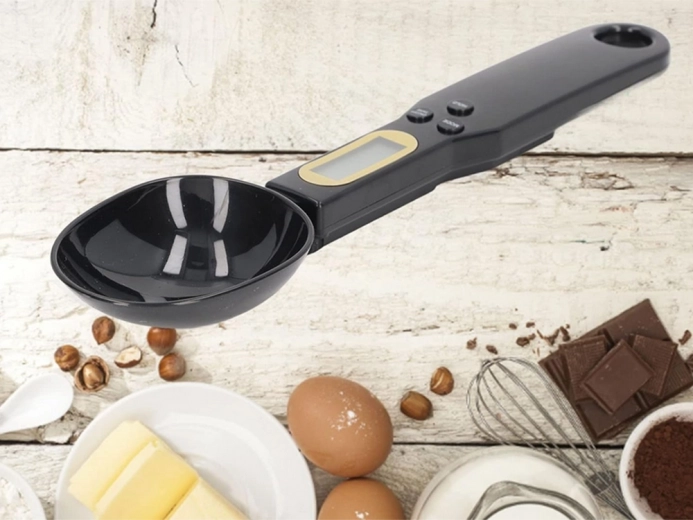 Praktična digitalna merilna žlica z LCD-zaslonom za natančno tehtanje sestavin od 0,1 g do 500 g. Zahvaljujoč funkcijam TARE, izbiri enot in samodejnemu izklopu je idealna za začimbe, kavo, praške in tekoče sestavine. Lahka, kompaktna in preprosta za uporabo – popoln pomočnik za vsakodnevno kuhanje in peko.