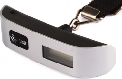 Praktična in lahka tehtnica za prtljago je idealen sopotnik za vsakega popotnika. Zahvaljujoč trdnemu jeklenemu nosilcu/pasu boste hitro in zanesljivo stehtali kovčke, športne torbe in pakete. Jasno modro osvetljen LCD-zaslon zagotavlja enostavno branje vrednosti v vseh pogojih.
