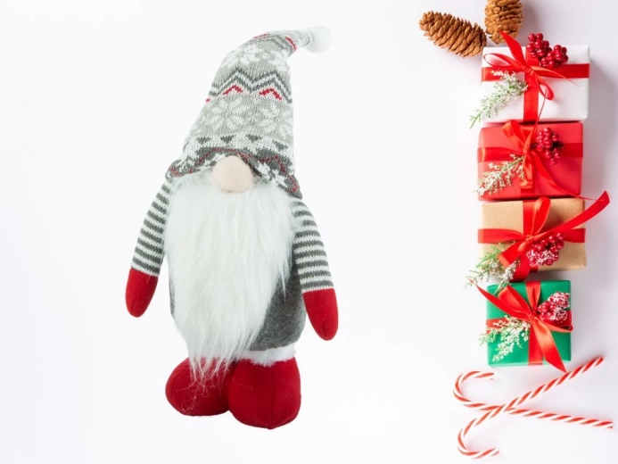 Škrat je iz odpornega materiala, ki dobro prenaša vsakodnevno ravnanje. Stabilna izvedba in kakovostni šivi zagotavljajo, da bo postal priljubljeni spremljevalec vaših božičev za mnoge sezone. Nevtralna siva barva se zlahka kombinira z rdečimi poudarki in naravnimi toni.