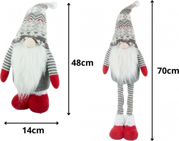 Ustvarite doma čarobno zimsko sceno s škratom, ki raste skupaj z vašo dekoracijo. S pomočjo teleskopskih nog preprosto nastavite višino od 50 do 70 cm, zato se popolno poda na polico, komodo, okensko polico in pod božično smrečico. Mehka tekstilna izdelava, dolg bel brk in vzorčena siva kapica prostoru dodajo skandinavski čar.