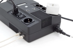 Poskrbite za mir in kontinuiteto dela tudi ob izpadih elektrike. UPS DIGITUS s tehnologijo line-interactive samodejno stabilizira izhodno napetost (AVR), ščiti pred prenapetostjo in zagotavlja dovolj rezerve za varno shranjevanje podatkov ter pravilno izklapljanje naprav. Kompaktne mere in tih pogon so primerni za domačo pisarno in manjša podjetja.