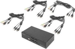 Med računalniki preklapljate bodisi z gumbi na sprednji plošči bodisi s tipkovnimi bližnjicami (Hotkey). Stikalo podpira tudi zvočni signal za mikrofon in zvočnike, pri čemer vam LED‑indikacija vedno pokaže, kateri priključek je aktiven. Namestitev je povsem plug & play brez gonilnikov in deluje v različnih operacijskih sistemih. Odporno kovinsko ohišje je primerno za pisarno, IT‑delovna mesta in AV‑namestitve.