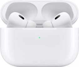 Polnilni etui MagSafe (USB‑C) podpira polnjenje prek USB‑C, MagSafe, Apple Watch in Qi. Čip U1 z natančno lokalizacijo v aplikaciji Najdi in vgrajeni zvočnik olajšata iskanje etuija. Odpornost IP54 ščiti pred prahom, znojem in vodo. Na dotik občutljivo upravljanje na slušalki omogoča spreminjanje glasnosti, preskakovanje skladb, preklapljanje načinov in upravljanje klicev.