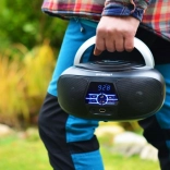 Z ročajem in napajanjem 4× R20 vzamete boombox kamor koli – v park, na teraso ali na izlet brez vtičnice.