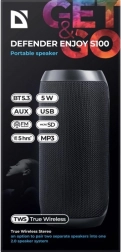 Uživajte v najljubših seznamih predvajanja s prenosnim zvočnikom DEFENDER Enjoy S100 v elegantni črni barvi. Zahvaljujoč brezžični tehnologiji Bluetooth boste telefon ali tablico povezali v hipu in poslušali brez odvečnih kablov. Vgrajeni MP3 predvajalnik in FM radio razširjata možnosti zabave doma, na poti ali na prostem.