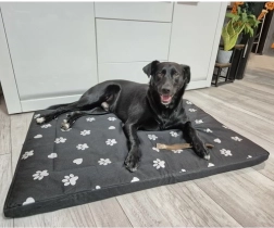 Z velikostjo 100cm x 70cm je idealno za večje pasme in njegova vsestranskost omogoča uporabo tudi kot praktična podloga v avtomobilu.
