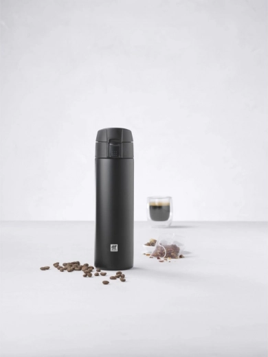 Minimalističen in trpežen termo lonček ZWILLING Thermo v mat črni izvedbi združuje vrhunsko izolacijo in premišljeno ergonomijo. Praktičen pokrov s tipko odprete z enim pritiskom, zapora preprečuje polivanje med prenašanjem, celoten pokrov pa je mogoče enostavno razstaviti za temeljito čiščenje.