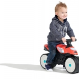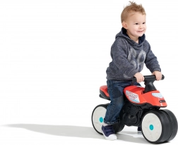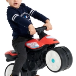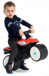 Stajliš poganjalec Falk Baby Moto Team Bud Racing v rdeči barvi je odlično prvo vozilo za male voznike. Zahvaljujoč tihim gumijastim kolesom je primeren za stanovanje in vrt, malčkom pa pomaga razvijati stabilnost, motoriko in samozavest. Nizko težišče in višina sedeža 29 cm zagotavljata udobno sedenje in varno vožnjo.