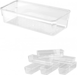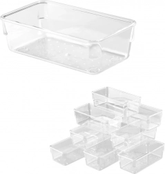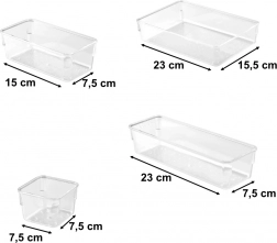 Organizatorji iz kakovostnega akrila so lahki, a hkrati trdni in vzdržljivi. Odlični so za pisarniške potrebščine, kozmetiko, nakit, kuhinjske drobnarije ali delavniške komponente. Set je idealen za hitro organizacijo in minimiziranje nereda v gospodinjstvu in pisarni.