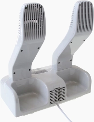 Dva podaljšana kraka z ventilacijo in vgrajenim ventilatorjem pospešujeta sušenje ter enakomerno razporejata topel zrak po celotni obutvi.
