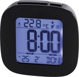 Velik zaslon prikazuje čas, datum, dan in temperaturo. Osvetlitev zagotavlja dobro berljivost tudi v temi.