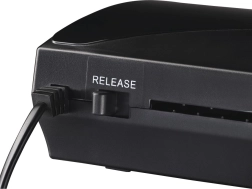 Eleganten črn dizajn se poda v vsak prostor, z gumbom za sprostitev in kablom za enostavno ravnanje z dokumenti.