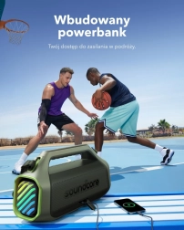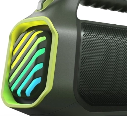 Trpežna konstrukcija z zaščito IPX7 prenese dež, bazen in mokre dogodivščine – zvočnik celo plava na vodi. Izjemno dolga avtonomija do 24 ur z baterijo 10.000 mAh in možnost powerbank za polnjenje telefona ohrani vaš ritem ves dan.