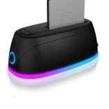 Z funkcijama Plug & Play in HotSwap lahko diske varno menjate med delovanjem, medtem ko diskretna LED ambientna osvetlitev signalizira stanje napajanja in aktivnost. Vključena je povezljivost prek USB‑C in USB‑A (glede na priložen kabel/adapter), zato zlahka priključite sodobne prenosnike in starejše računalnike.