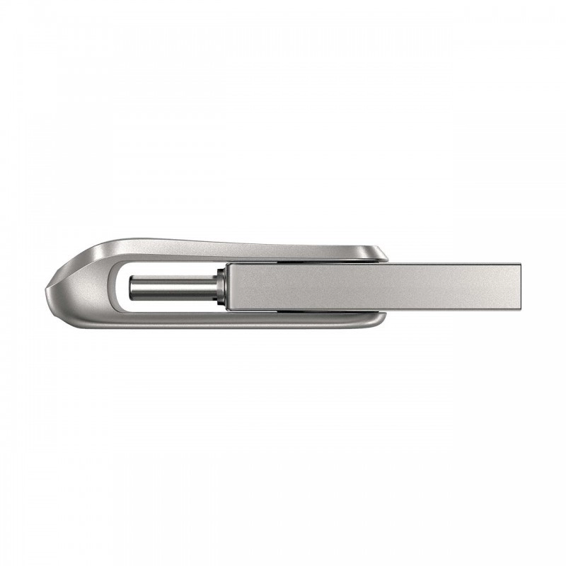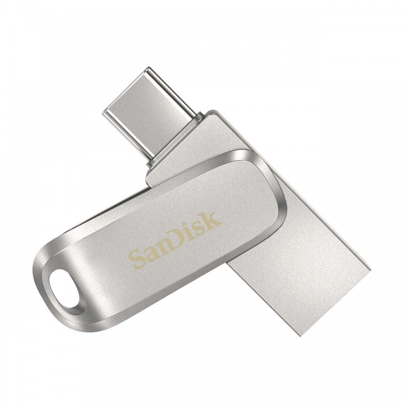 Kompakten kovinski bliskovni pogon SanDisk Ultra Dual Drive Luxe 512 GB z dvojnim vmesnikom USB‑C in USB‑A olajša prenos datotek med telefonom, tablico, Macom in računalnikom. Ponuja hitro branje do 150 MB/s, vrtljivo kovinsko ohišje za zaščito priključkov, praktično ušesce za ključe ter podporo za aplikacijo SanDisk Memory Zone za enostavno varnostno kopiranje.