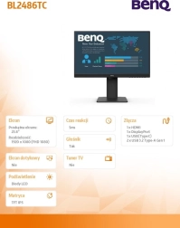 BenQ BL2486TC je opremljen z napredno tehnologijo IPS, ki zagotavlja široke vidne kote in natančen prikaz barv, kar je idealno za vsak profesionalni delovni prostor. Z Full HD ločljivostjo ponuja ostro in podrobno sliko, ki je ključna pri delu z grafičnimi vsebinami ali dokumenti.