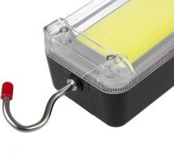 Za maksimalno prilagodljivost je svetilka opremljena z vrtljivim kavljem za obešanje, magneti za pritrditev na kovinske površine in sponko v vrtljivem ročaju za trdno pritrditev na mizo ali polico. Napajanje z dvema polnilnima akumulatorjema 1200 mAh zagotovi do 4–6 ur delovanja, polnjenje pa je enostavno prek USB kabla.