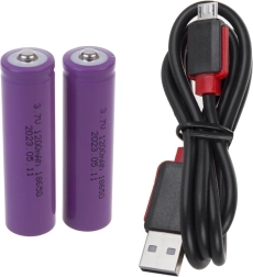 Dva akumulatorja 1200 mAh in USB kabel v kompletu. Z enim polnjenjem sveti 4–6 ur – idealno za servis in kampiranje.