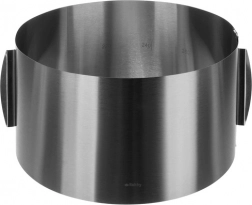 Profesionalni nastavljiv tortni obroč iz nerjavečega jekla z višino 15 cm za popolne visoke biskvite in večplastne deserte. Zahvaljujoč robustnim sponkam je stabilen tudi pri maksimalnem raztegu, nastavljiv v razponu 16–30 cm brez orodja, varen za stik z živili in primeren za pomivalni stroj.